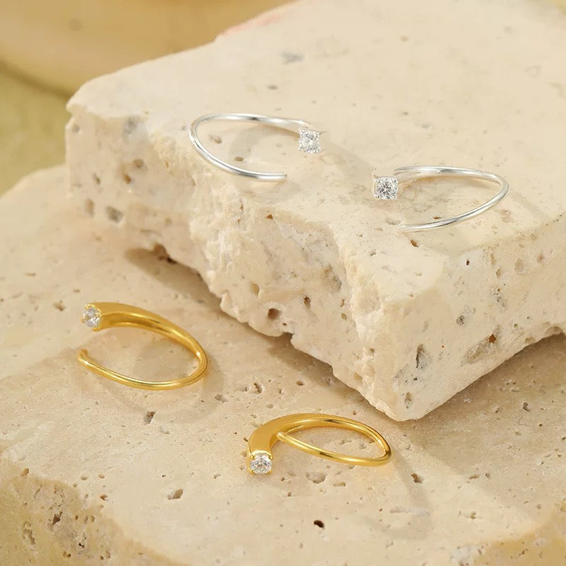 A masterclass in fluid minimalism. These sculptural hooks feature a single, brilliant zircon suspended at the base of a sleek silver curve. Engineered for a weightless feel (only 1g), they offer pure comfort for 24/7 wear—perfect for sleeping in, living in, and never taking off.
